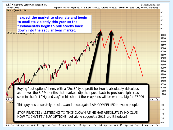 One can either trade or hold. If one holds and we do get a bear market with a bottom around 2016 then puts should be deep in the money by that time despite some gyrations in 2014.