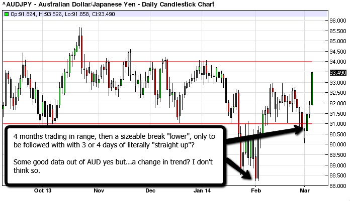 Short AUD – killer, and the long list of gold and silver miners entered “weeks ago” doesn’t hurt either.
